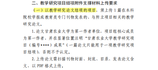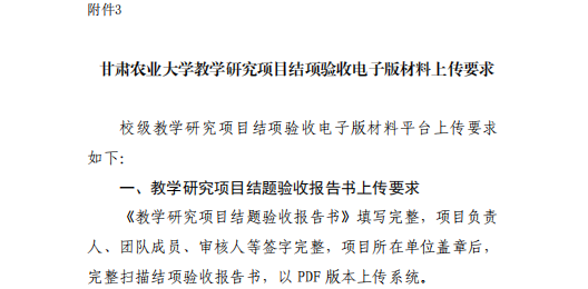 3.甘肃农业大学教学研究项目结项验收电子版材料上传要求